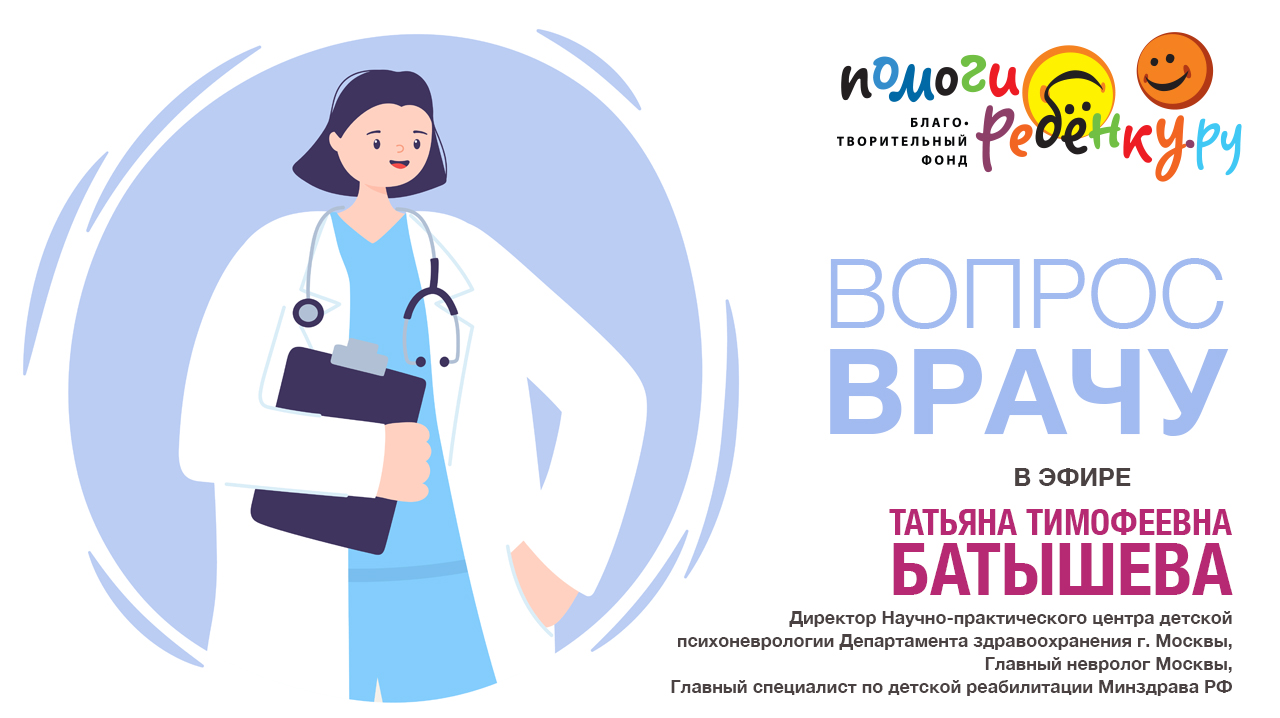 На вопросы родителей ответит Татьяна Тимофеевна Батышева - доктор медицинских наук, директор Научно-практического центра детской психоневрологии Департамента здравоохранения г.Москвы, главный невролог Москвы, главный специалист по детской реабилитации Минздрава РФ.