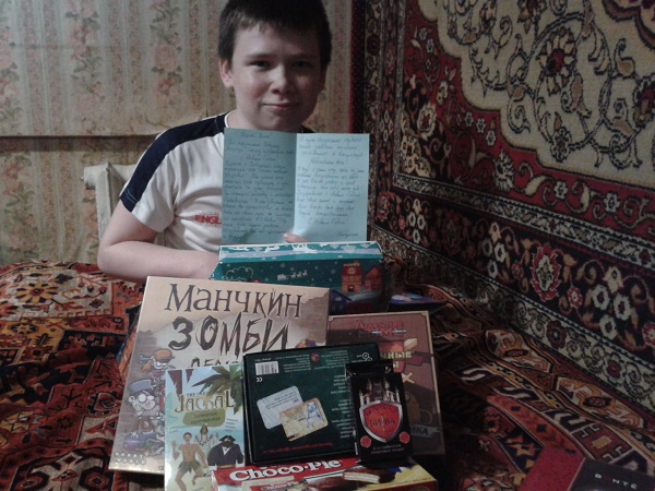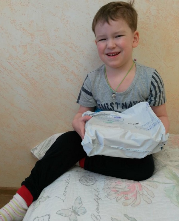 Спасибо огромное Вам и той семье, которая сыграла роль Деда Мороза и исполнила давнюю мечту моего сына. В посылке еще лежали письма. Такие теплые и душевные... С поздравлениями и и добрыми пожеланиями. Так светло сразу стало на душе. Читали эти письма все вместе и радовались, что есть такие добрые сердца.