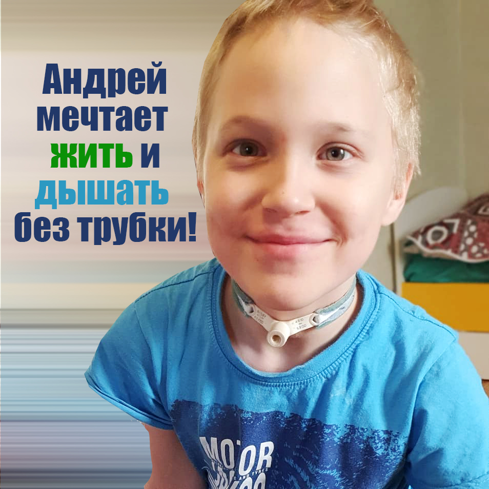 За свои 10 лет Андрей пережил бесконечное количество операций и наркозов. Врачи долгое время не были уверены, что трахеостому - трубку в горле - через которую дышит мальчик, можно убрать. Слишком сложный случай, много рубцовой ткани в гортани. Но оказалось, что это возможно! Сейчас в лечении Андрея остался финальный этап – удаление трахеостомы. Этап, за которым стоит полноценное детство и жизнь ребенка. Этап, к которому Андрюша шел долгие годы и который нужно провести как можно скорее, чтобы не потерять эффект от недавних оперативных вмешательств. Помогите Андрею дышать свободно. Самому. Без ограничений. Пока в помощь Андрею собрано лишь 6.650 рублей. Это капля в море. Ведь общий счет за лечение составляет 2.100.000 руб.