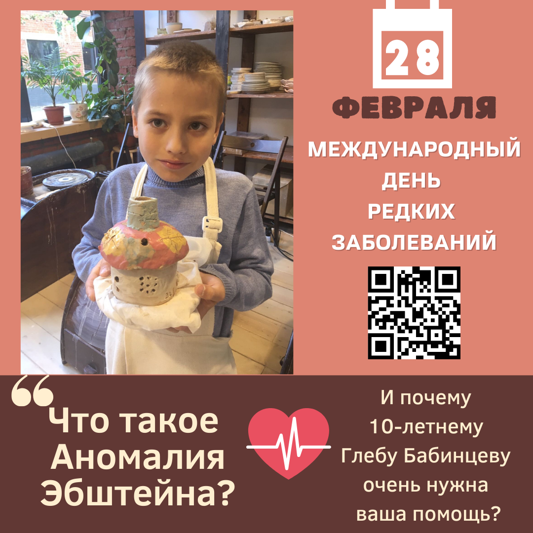 28 февраля отмечается Международный день редких заболеваний. В данный момент в мире насчитывается более 6 тысяч редких болезней. В российском перечне их - более 270 наименований. И сегодня мы хотим рассказать вам об одном из них - аномалии Эбштейна – редком и тяжелом пороке сердца, которым страдает один из наших подопечных – 10-летний Глеб Бабинцев. Это заболевание встречается приблизительно в 1 случае на 20000 новорожденных. Такие дети рождаются с цианозом, ритм их сердца замедлен. При данной аномалии аортальный клапан смещен в полость правого желудочка, т.е. расположен значительно ниже по току крови. Створки клапана тоже смещены и неправильно развиты вместе со всем аппаратом, приводящим его в движение. Порок сочетается с дефектом межпредсердной перегородки. Поэтому у ребенка происходит сброс крови из постоянно переполненного правового желудочка – в левый. И если сброса не происходит – состояние ребенка может стать критическим. Чтобы облегчить работу правого отдела сердца – необходима операция. Глеб уже пережил две такие радикальные операции - пластику трикуспидального клапана и установку биологического протеза легочного клапана. Но последний клапан износился и едва работает. Глеб очень быстро устает и в свои 10 лет весит всего 22 кг. Сердце не справляется. Операцию нужно проводить срочно.