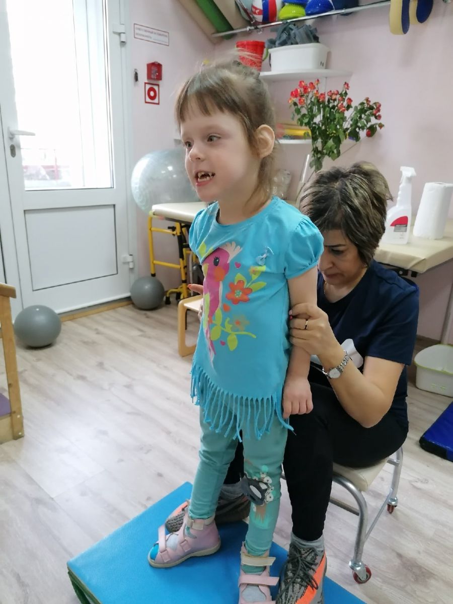 Пишет мама Василисы: "Дорогие наши волшебники, наша большая многодетная семья хочет сказать вам огромное спасибо за вашу помощь. За оплаченный курс реабилитации в РЦ "Первый шаг". Василиса очень хорошо потрудилась на занятиях. Очень важно, что в центре Василиса проходила занятия без специализированных средств, на основе принципа «голой стопы», что способствовало правильному формированию сводов и развитию чувствительности ног. В результате занятий у нее значительно улучшилось состояние мышечного каркаса спины – а это новый шаг не только к более длительному самостоятельному стоянию и хождению у опоры, но и дальнейшей устойчивой самостоятельной ходьбе за руки и без поддержки! Увеличился объем движений во всех суставах, снизилось спастическое напряжение в мышцах, что помогает более уверенно удерживать тело в пространстве. Еще в августе, держась за поручень, Василиса не могла стоять более 10 секунд. После курса она сама уверенно стоит почти минуту, держась руками за канат или другую опору. Раньше Василисе удавалось сделать лишь несколько неуверенных шагов с помощью инструктора, опираясь на его руки. Она очень неохотно и с трудом подтягивала ножки. После курса у нее кардинально изменилась походка: темп шага стал более уверенным и быстрым, Василиса более правильно ставит ногу при ходьбе, появился первый автоматизм движения, постановки стоп. Реабилитологи очень хвалили Василису. Спасибо вам! Это огромное счастье, что на земле есть такие неравнодушные люди, как вы, которые помогают детям. Мы желаем всем благотворителям успехов, процветания и здоровья!"