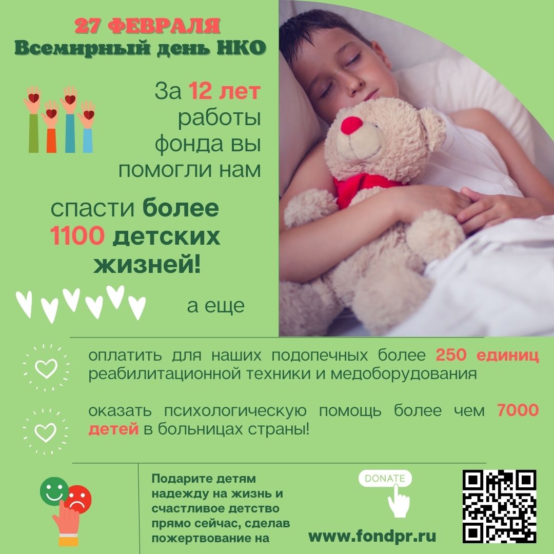 В этот день нам очень хочется рассказать вам о добрых делах, которые вы помогли совершить нашему фонду за прошлый год. И представить наш годовой отчет-2023 , в котором за каждой цифрой стоят спасенные благодаря вам детские жизни (о них подробнее в нашем традиционном ежегодном видеоотчете).