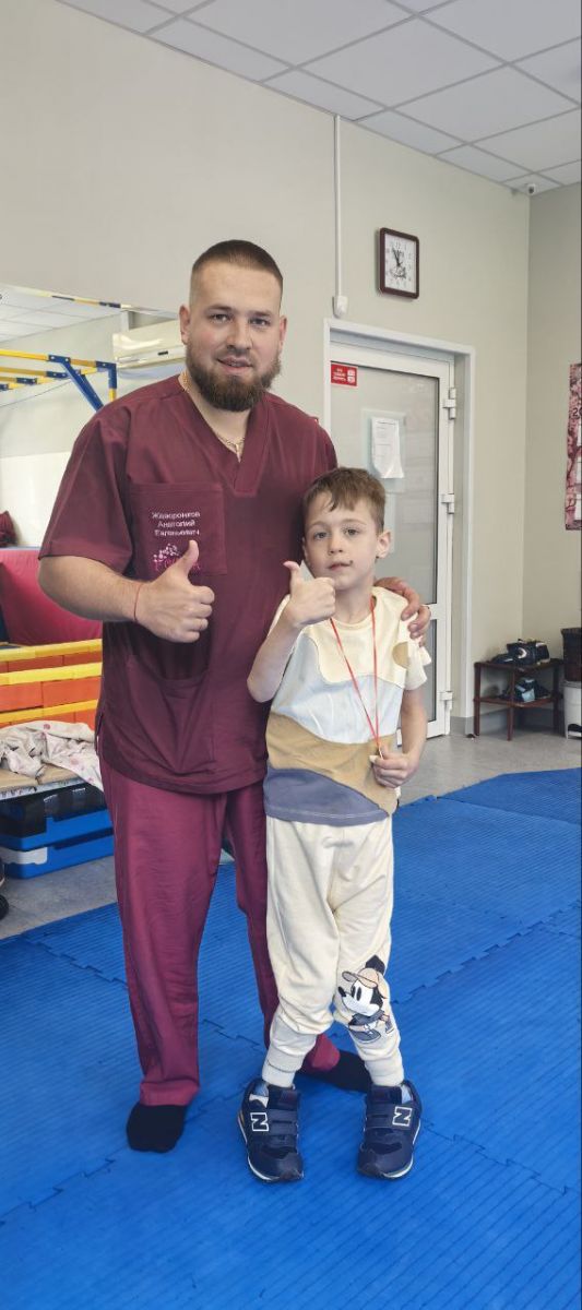 Этот курс был очень интенсивным, мы занимались с использованием различных методик реабилитации. На ЛФК всё внимание было направлено на разработку мышц спины, тазовых мышц, мышц передней поверхности бедра, которые значительно окрепли у Платона, а еще у него улучшился баланс тела. Мы также проходили массаж для общего укрепления мышц. Большую пользу принесла и методика терапии рук. Так как Платон в этом году идет в школу, ему необходимо было поставить руку для письма. И это во многом удалось! Будем работать дальше над этой задачей. С логопедом много работали над постановкой различных звуков. Платону никак не поддаётся звук "Р", но мы не опускаем руки, продолжаем заниматься по рекомендациям и осваиваем его.