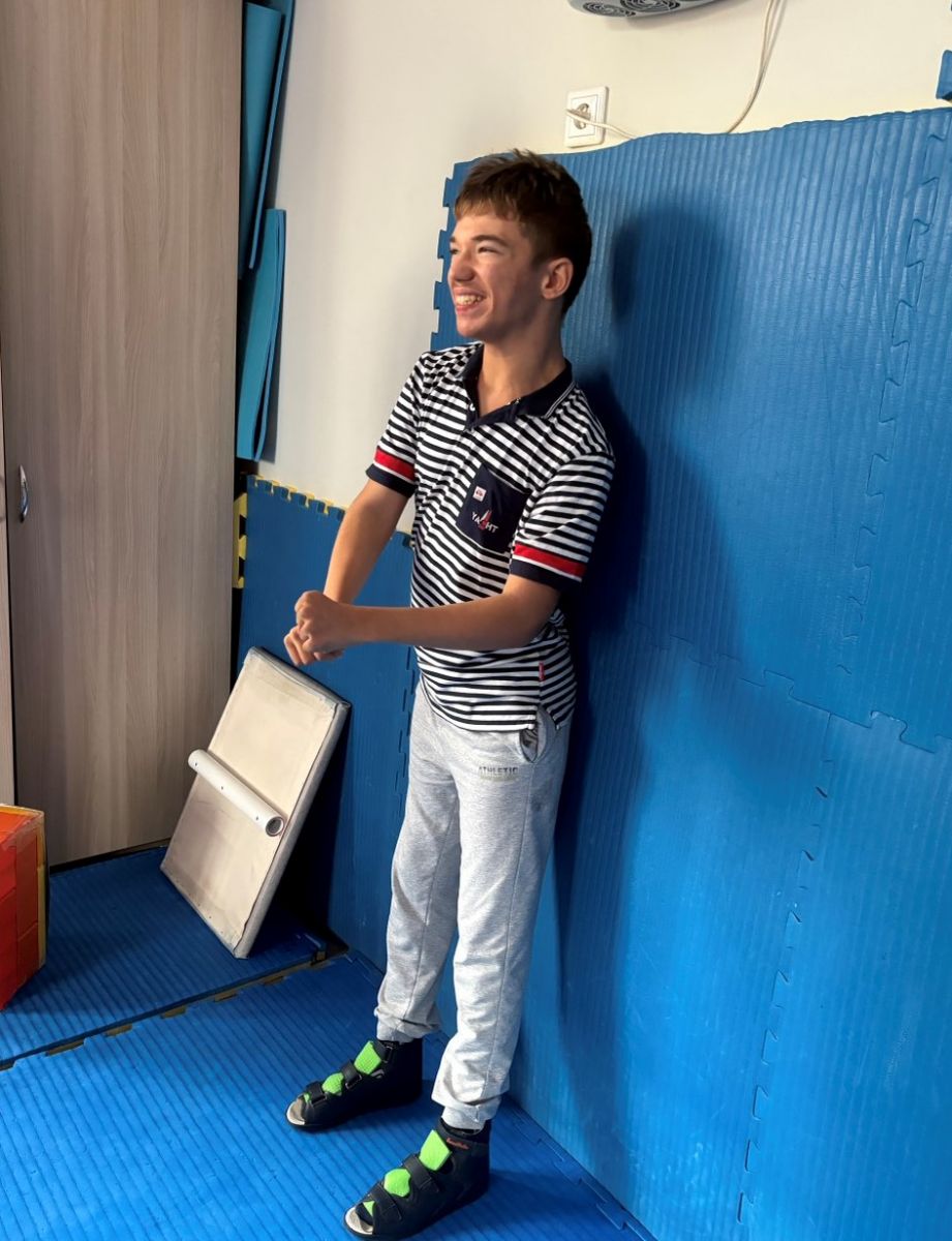 Сегодня Игорю 16. Он взрослеет, растёт, делает успехи, о которых когда-то и мечтать было сложно. После сложной операции Игорь снова учится ходить на «новых ногах» - как он сам их называет. Каждое движение для него - это победа. Каждое слово — чудо. Каждый шаг — доказательство, что усилия не напрасны.