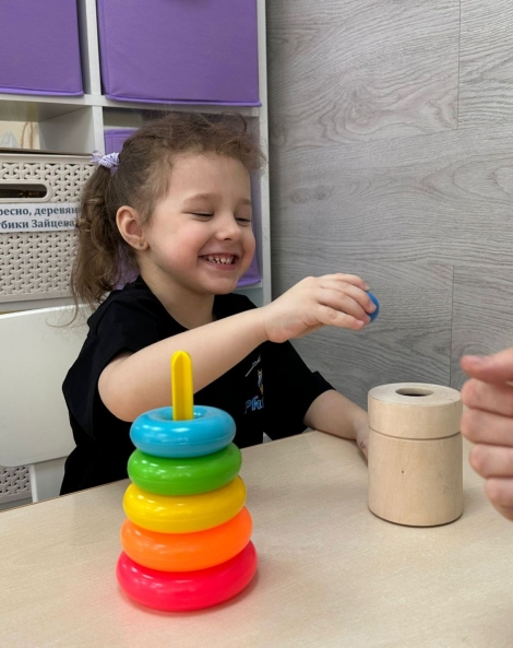 На данный момент у дочки не сформированы навыки опрятности и самообслуживания, ранее она на все реагировала с истерикой, сейчас, спустя год занятий, стала более спокойна и научилась одеваться. Пока Алиса не выполняет просьбы, речи так и нет, периодически она начинает кричать без причины, но мы над этим работаем. Первый интенсивный курс мы прошли летом 2024 г., на него нам помогли собрать средства в благотворительном фонде «Счастье детям», после этого курса у Алисы появился указательный жест, и она стала есть самостоятельно, научилась собирать пирамидку, делать различные сортировки, стала со мной заниматься дома, выполнять задания (а до этого добиться от нее подобных шагов было просто невозможно).