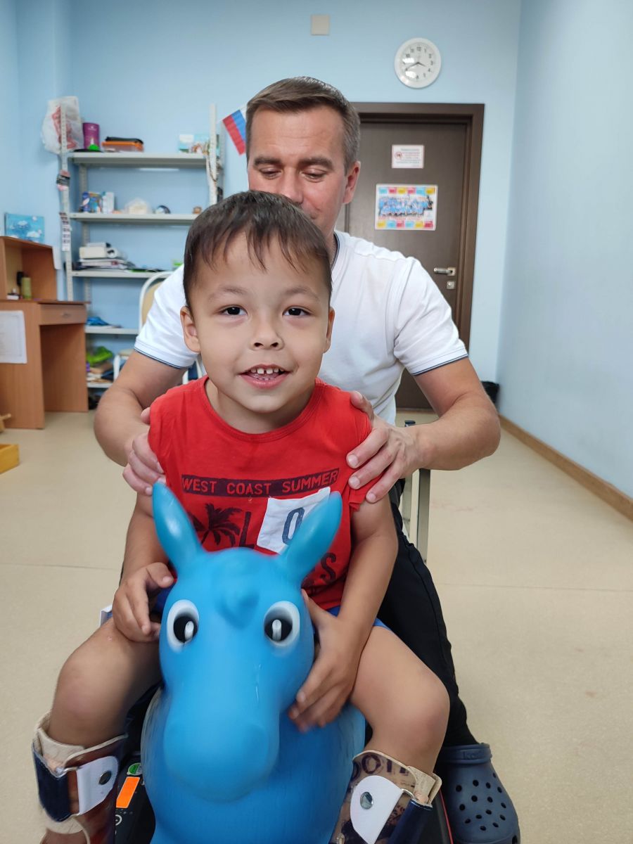 Несмотря на трудности, Рома добился многих побед: научился переворачиваться, ползать, вставать у опоры, подниматься по лестнице, произносить первые слова. В 2023 году Роме провели операцию СДР, которая помогла убрать спастику. А последующая реабилитация в ФОЦ «Адели-Пенза» помогла Роме окрепнуть и добиться новых навыков – дома его специалисты просто не узнали! Сегодня Рома уже пытается делать шаги у опоры и сам встает. Но, к сожалению, в городе, где он живет, нет возможности проходить интенсивные курсы занятий. Его семья делает всё возможное: папа работает сварщиком, а пенсия по инвалидности идёт на текущие занятия. Но оплатить дорогостоящий курс самостоятельно они не в силах.