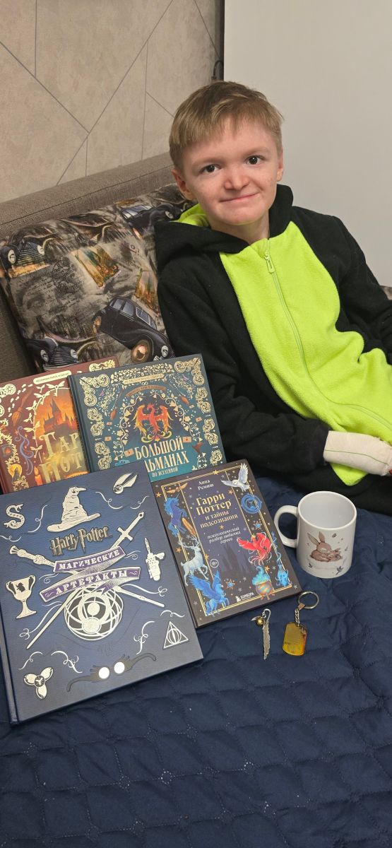 Пишет мама Владика Валла: "Добрый вечер, наши дорогие волшебники. С наступившим Новым годом! В наш дом он принес невероятные эмоции и волшебство. Ведь это время, когда сбываются самые заветные желания! И мы получили подарки от нашей Снегурочки Елены. Влад был очень рад и не мог скрыть удивления, когда получил подарок, я, кстати, тоже. Мы даже не ожидали, что книги, которые мечтал прочитать Влад - такого невероятного качества, словно настоящие волшебники и магия вот-вот - и вихрем ворвутся в нашу обыденную жизнь. Так же, как они ворвались в жизнь героя книг - Гарри Поттера, которым увлекается Влад. Мы с Владом, затаив дыхание, перелистывали страницы книг, даже я нашла там массу интересных открытий для себя - уже взрослого человека, который, казалось бы, давно перестал верить в чудеса... А Влад вообще не может от них оторваться. И, уверена, будет открывать в них много интересного и необычного снова и снова, перечитывая волшебные страницы!