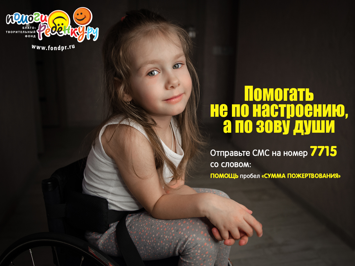 Друзья, как вы знаете, самый простой способ помочь подопечным фонда - это отправить смс со словами ПОМОЩЬ 100 на номер 7715 (где 100 - любая сумма). Приходящие в фонд смс поступают на расчетный счет 1 раз в месяц и направляются самому срочному ребенку.