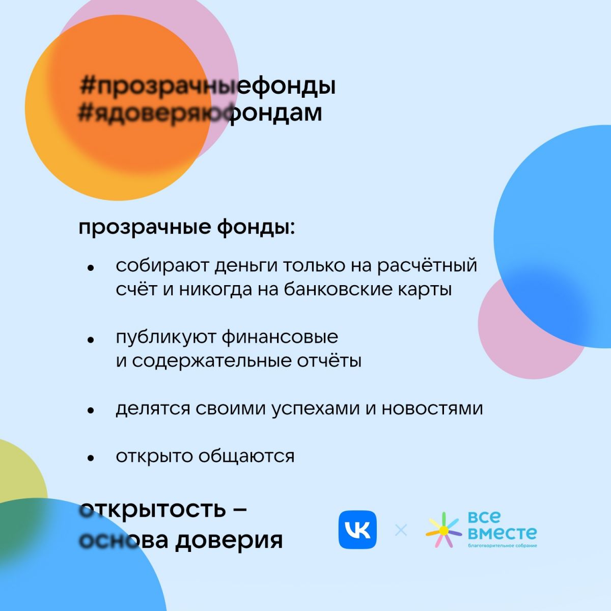 Благотворительность основана на доверии. Без него фондам не собрать нужные суммы на помощь подопечным, не найти партнеров для своих проектов, не изменить мир к лучшему. На этой неделе в России отмечается День прозрачной благотворительности, и НКО рассказывают о важной роли прозрачности и открытости в своей работе. Наш фонд тоже присоединился к этой замечательной инициативе.