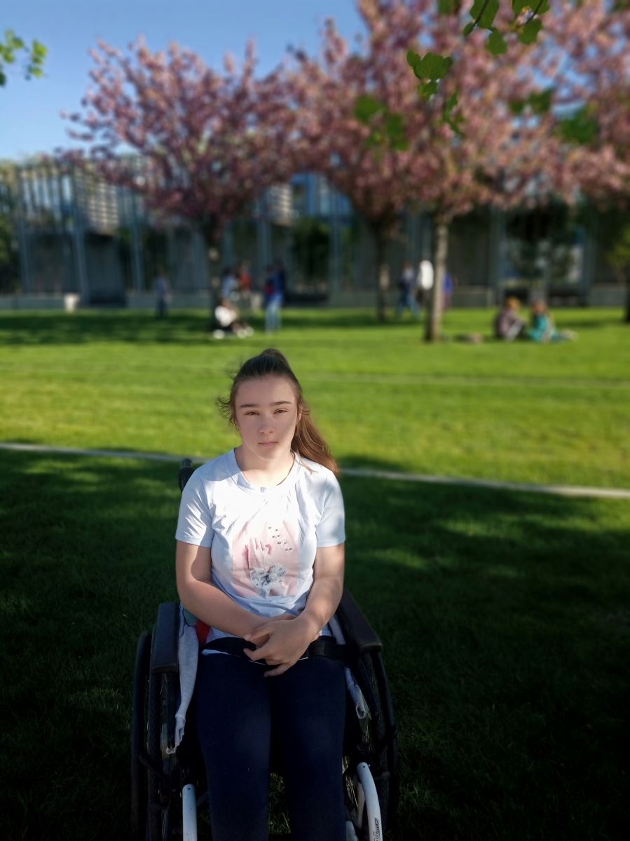 У Риты появилась возможность самостоятельно передвигаться по улице, ей подарили электроприставку к коляске. Теперь гоняет по улице, может съездить в гости к бабушке без помощи.