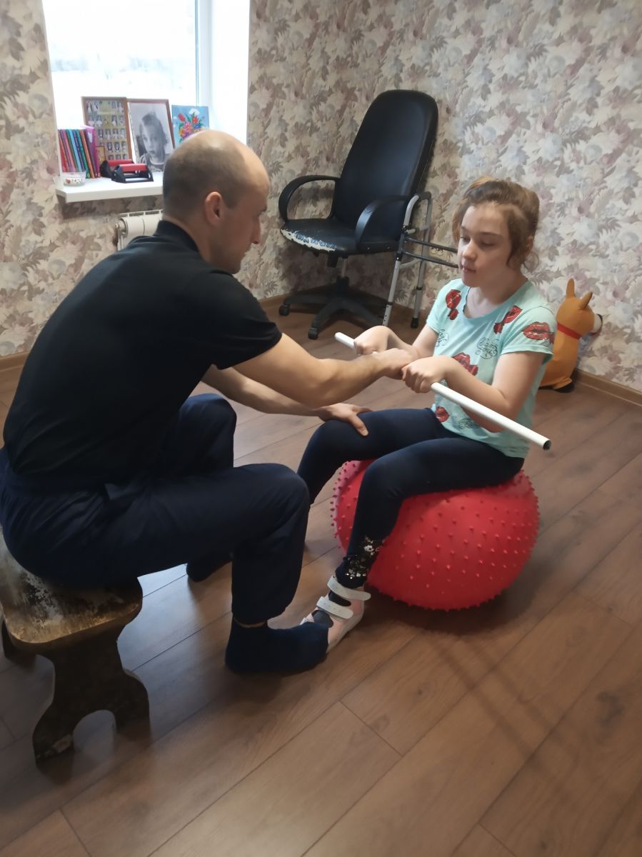 В последнее время сложно попасть на лечение и нам повезло, что наш классный руководитель, зная о нашей проблеме и имея спец. образование, пришел к нам на помощь. Теперь два раза в неделю Рита занимается ЛФК с инструктором. Для нас это чудо, так как живём мы в деревне, где нет даже больницы. Конечно, эти занятия не заменят реабилитацию в центре, но для поддержания физических навыков это необходимо.