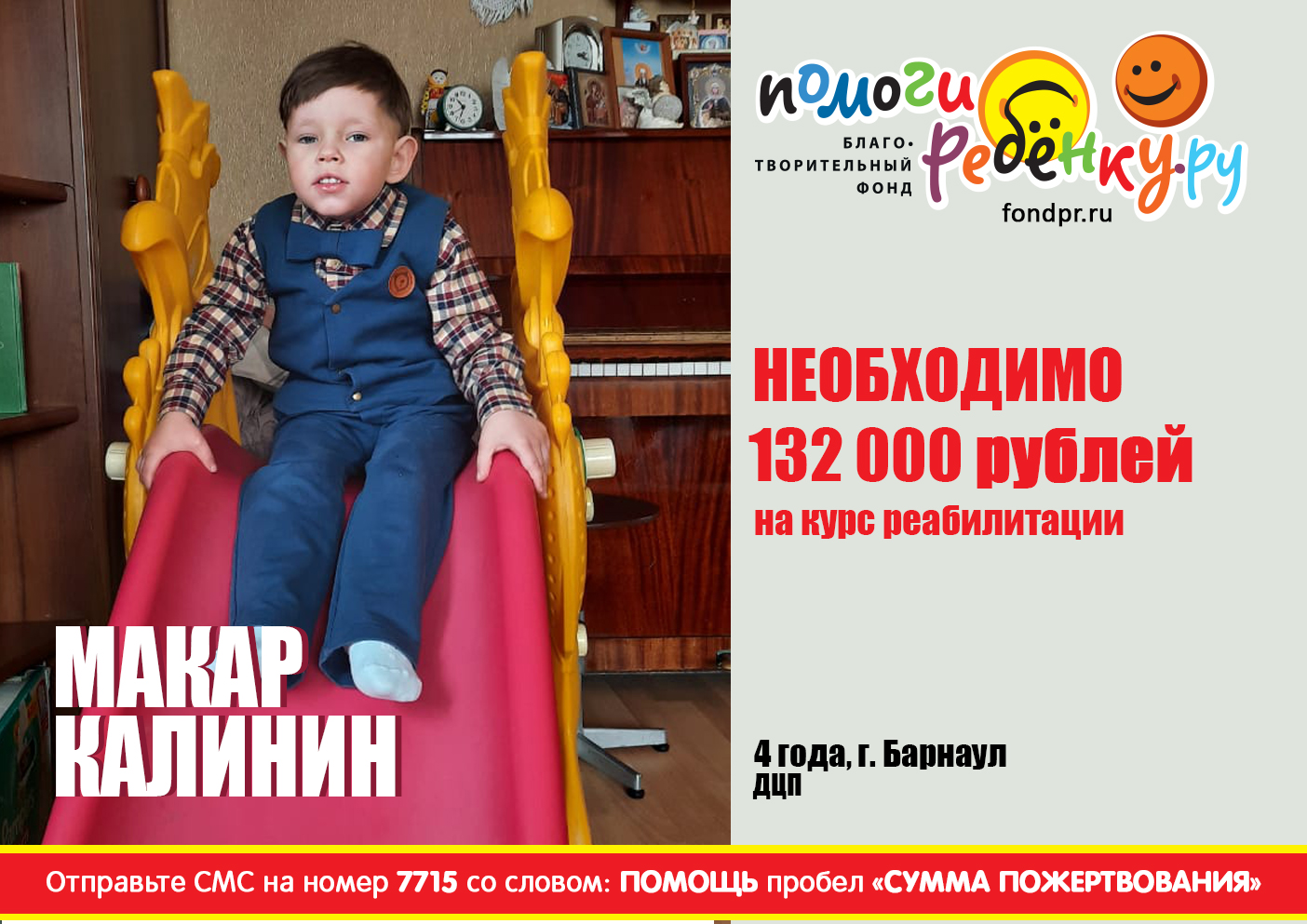 Вы можете помочь маленькому Макару пройти курс реабилитации, отправив пожертвование: