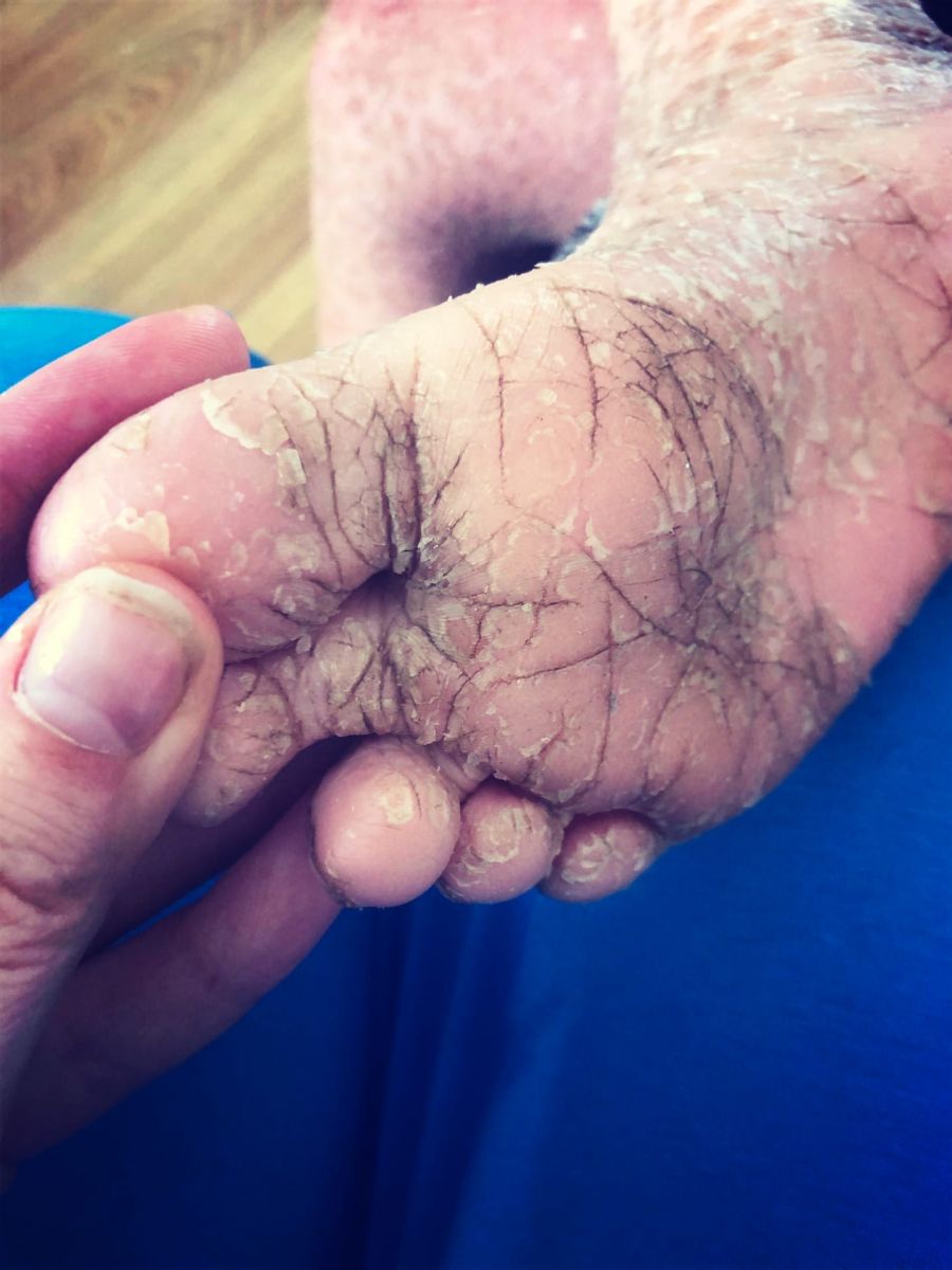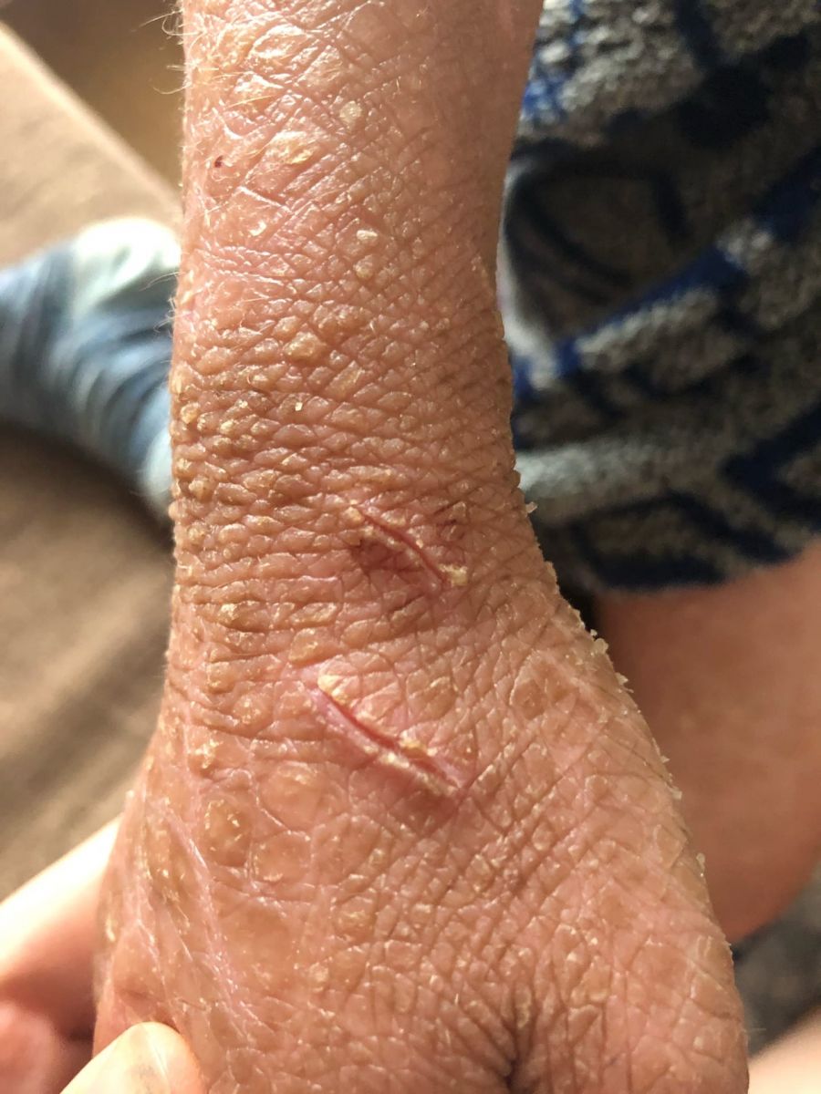 Друзья, всё-таки жара не прошла мимо здоровья Миши. Кожа ушла в резкое ухудшение. Появились глубокие гнойные трещины, воспалилась слизистая глаз, вся кожа в микротрещинах. Спустя 3 года нам снова приходиться использовать гормоны (крем).