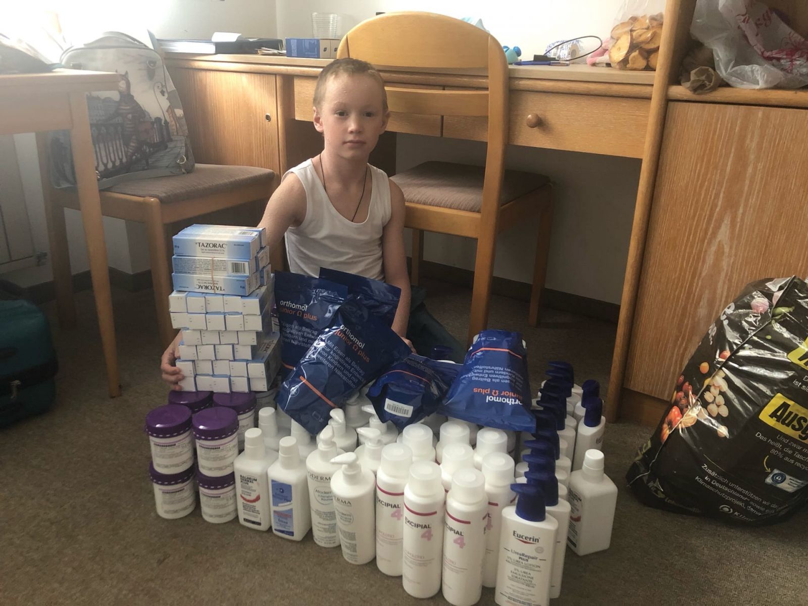 Что вытворяла эта болезнь, в той страшной форме, которая досталась Мише, не просто вспоминать. Лечение не давало результатов, состояние ухудшалось с каждым днем, нужно было кардинально менять подход к лечению. Изучив разные источники и пообщавшись с другими мамами, чьи дети родились с таким же диагнозом- я узнала про Германию. И в 2018 году (Мише тогда было шесть лет), нам удалось попасть в немецкую клинику. Там нам очень сильно помогли, состояние кожных покровов резко улучшилось, роговой слой просто отваливался , за две недели кожа очистилась, у Миши даже на носу начали работать потовые железы- счастью не было предела. Плюс ко всему нас сняли полностью с гормонов. На протяжении шести лет мой сын получал гормонотерапию, что очень губительно для детского здоровья и не только. В клинике нам подобрали целый комплекс ухода за кожей и расписали целую схему, если которой мы будем придерживаться, то состояние кожных покровов будет улучшаться с каждым годом. Но эти специализированные средства по уходу за кожей очень дорогие и их можно купить только за границей строго по рецепту.