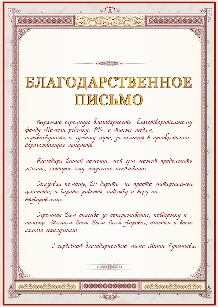 Спасибо всем за помощь и тёплые слова!!! Без Вас у Миши нет надежды на здоровое будущее!!!"