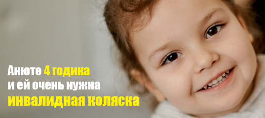 Анечке 4 годика. И недавно малышка перенесла операцию, которая поможет ей начать ходить. У Анюты ДЦП, родовая травма. Родители узнали об этом не сразу. А только спустя год с лишним. Никаких патологий врачи не видели, хотя Анечка к годику ползала только по-пластунски… С тех пор мама с папой активно занимаются с Анютой, и уже добились огромных успехов: Аня ходит с помощью ходунков, делает самостоятельно несколько шагов без помощи взрослого… Вот-вот и пойдет сама. Операция прошла успешно, врачи убрали спастику и сейчас Анечка с мамой проходят реабилитационный курс. Но после операции ребенку рекомендована специальная коляска для детей с особыми потребностями – с регулируемой спинкой и поддержкой ног, чтобы тело было в правильном положении. Иначе результаты операции не закрепятся. И все будет напрасно. А пока мама носит Аню на руках – с этажа на этаж, с поезда после реабилитации – домой (плюс еще багаж), с прогулки – в квартиру… Из старой коляски, которую выдало государство, малышка выросла и в ней сидеть просто невозможно. Анюта старается стойко терпеть, как стойкий оловянный солдатик, и лишний раз не проситься на ручки… Но это тоже неправильно. Ведь боль и напряжение стирают все результаты реабилитации. Поэтому мы просим вас помочь Анюте.
