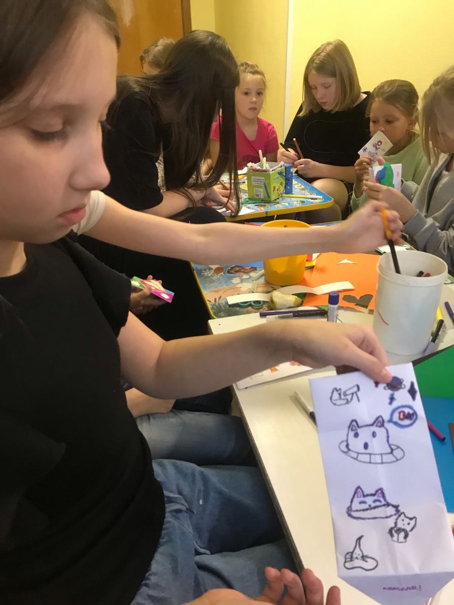 Рассказывает Марина Данилова: "На юбилей нашей "Коробки храбрости" в этом году мы решили сделать поздравительные открытки и украсить ими новую доску информации (спасибо анонимному спонсору, одному из друзей фонда за такой подарок). Старую доску после ремонта пришлось заменить. Детей на мастер-классе было много. Но много осталось и в палатах, здоровье не позволяло. А ведь творить хочется всем! Так что мы принесли ребятам в палатах альбомы, раскраски, карандаши и фломастеры. И начали создавать красоту. Конвертики-оригами, чудесные рисунки. Умилила всех малышка Серафима. Она отказалась вешать на доску свою открытку. «Это же для неё подарок. Это у нее День Рождения!», - настойчиво приговаривала кроха, протягивая своё творение... нашей "Коробке храбрости" с игрушками (которую мы предварительно заполнили)! Вот так наша "Коробка" стала для детей настоящим волшебным живым существом, которое помогает осушить детские слезы и зарядить силой и надеждой - в победу над болезнью! Вот на такой позитивной ноте, с шутками и смехом, дети в больнице провели время мастер-класса. Ну а потом каждый получил подарок. Спасибо тысячу раз каждому из вас за невероятную помощь. Столько детей вернулось в обычную жизнь, забыв на время о больнице и боли, поверив в чудо!"