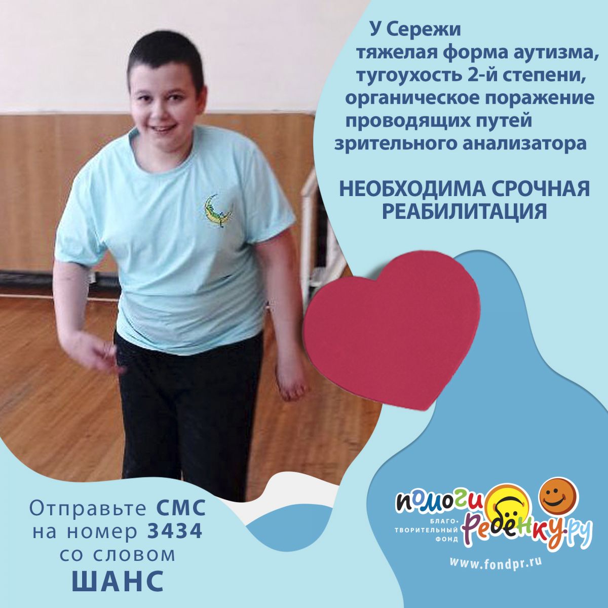 Жизнь Сережи – это постоянные занятия. Школа, реабилитация… Он уже подросток, и в городе с подросшими детьми-аутистами работает только один реабилитационный центр. Особенно в таком непростом случае, как у Сережи. А еще нужно проходить регулярные обследования у специалистов, ЭЭГ-мониторинги. И не важно – дождь или снег на улице. При малейшем пропуске состояние у Сережи начинает ухудшаться (как и у многих детей с аутизмом), эмоциональный фон нарушается, справиться с Сережей становится совсем непросто. Тут еще и подростковый возраст берет свое… А в свободное время Сережа «живет» прогулками на улице - даже в трескучий мороз, а еще... роликами. Вместе с другими особенными ребятами он уже много лет ходит на занятия в местный спортивный комплекс «Темп». Секция еле выживает, хоть желающих и много, но вот довезти ребенка-аутиста на занятия многим родителям из-за удаленности комплекса от дома – совсем не просто… В общественном транспорте из-за неконтролируемых вспышек поведения - просто никак... Раньше детей возили из школы на автобусе с сопровождающим, но сейчас на это нет средств… Вот и ходят 2-3 человека. Ролики Сережа освоил «на отлично». Посмотрите, как он замечательно держится! А в прошлом году даже выиграл эстафету и 2 призовых билета в кино! Когда Сережа делает виражи на роликах, его глаза загораются – так здорово чувствовать, что у тебя что-то хорошо в жизни получается! И так важно! Не чувствовать себя на этой планете иным, оторванным от окружающего мира. И Сережа за последние годы сделал в этом направлении очень уверенные шаги. Но чтобы эти результаты сохранялись, и развитие Сережи не останавливалось, нужно продолжать реабилитационные занятия с логопедом, дефектологом и другими специалистами, которые учат Сережу коммуникации с этим миром. Нужно продолжать реабилитацию. И начать очередной курс как можно скорее. Пожалуйста, помогите Сереже это сделать!