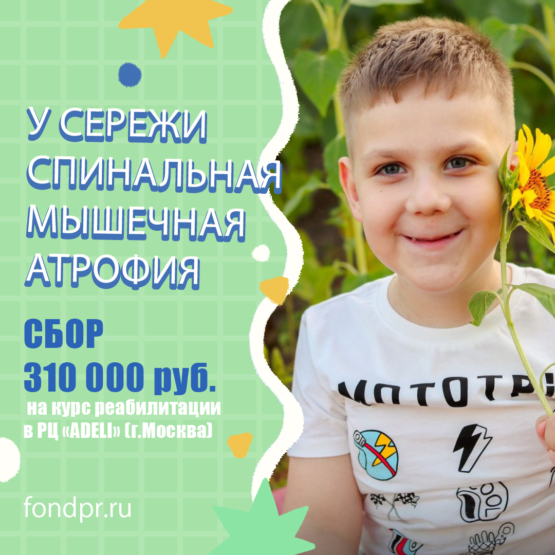 У Сережи развитый интеллект, развернутая речь, стабильное неврологическое состояние. Он дышит и ест самостоятельно. Несмотря на диагноз СМА, который еще несколько лет назад считался неизлечимым. Сейчас у Сережи появился шанс! Но физическое состояние надо развивать и поддерживать. Нужно постоянно проходить обследование у врачей и контролировать все изменения в состоянии. И, конечно же, необходимо продолжать занятия по реабилитации. Которые должны быть регулярными - чтобы все достижения Сережи, все восстановившиеся функции организма и навыки не были безвозвратно потеряны. Мама Сережи воспитывает одна троих детей. Одним им не справиться! "Для того, чтобы жить, нужно продолжать бороться!" - эта фраза стала девизом этой семьи. Вместе они пытаются вырвать Сережу из рук жестокой болезни. Пожалуйста, поддержите этого замечательного мальчишку!
