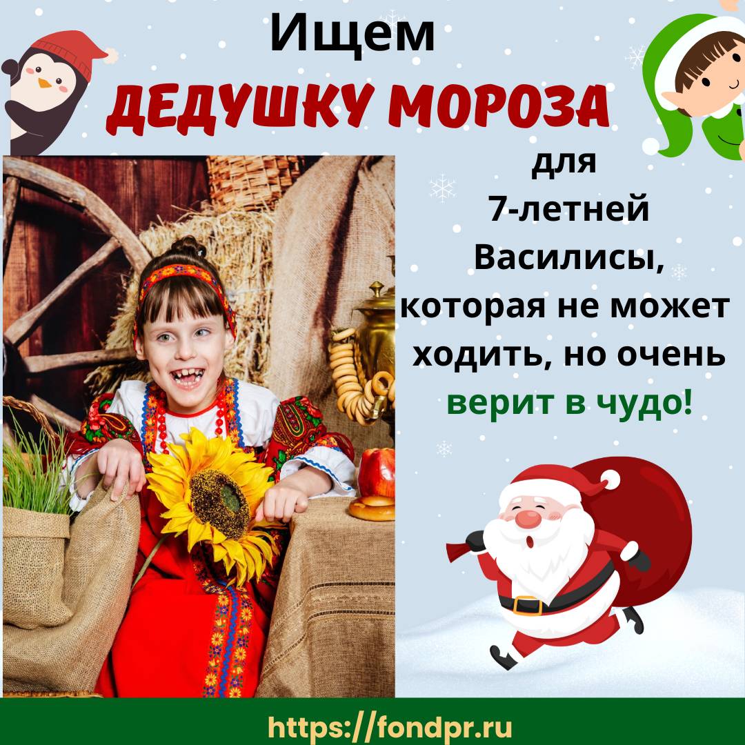 Маше 12 лет, она взрослеет. За последний год ее физическое состояние ухудшилось: сказывается подростковый возраст, резкие скачки. Летом Маше провели сложную операцию на ноги. Сейчас идет период восстановления. Маша очень старается вернуть все утраченное… Как и любая девочка-подросток, она очень любит модничать и мечтает, чтобы Дедушка Мороз принес ей на Новый год в подарок зимнюю вязаную шапочку с длинными ушками. А еще Маша очень любит гусей, поэтому другим вариантом подарка может стать уютный комплект постельного белья с симпатичными гусями Например, вот такой (1,5-ное, бязь) Снегурочка поздравит Машу с Новым годом и подарит подарок |