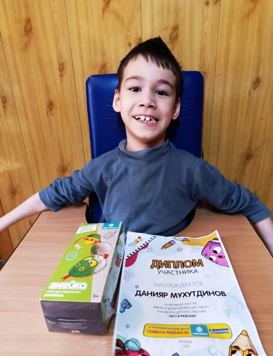 В 2024 году Данияр стал первоклассником. А еще он занимает призовые места на турнирах по шашкам среди детей с ограниченными возможностями здоровья, с удовольствием участвует в творческих мероприятиях! Вот такой молодец! Не сдается!