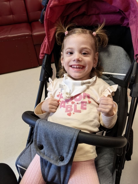 Аиша — солнечная, добрая девочка, она очень любит музыку и сказки, своих братьев и каждый вечер с нетерпением и лучезарной улыбкой ждет папу с работы. Она уже прошла невероятный путь от крошечной девочки, дышащей на аппарате ИВЛ до ребёнка, который вот-вот сделает свои первые уверенные шаги.