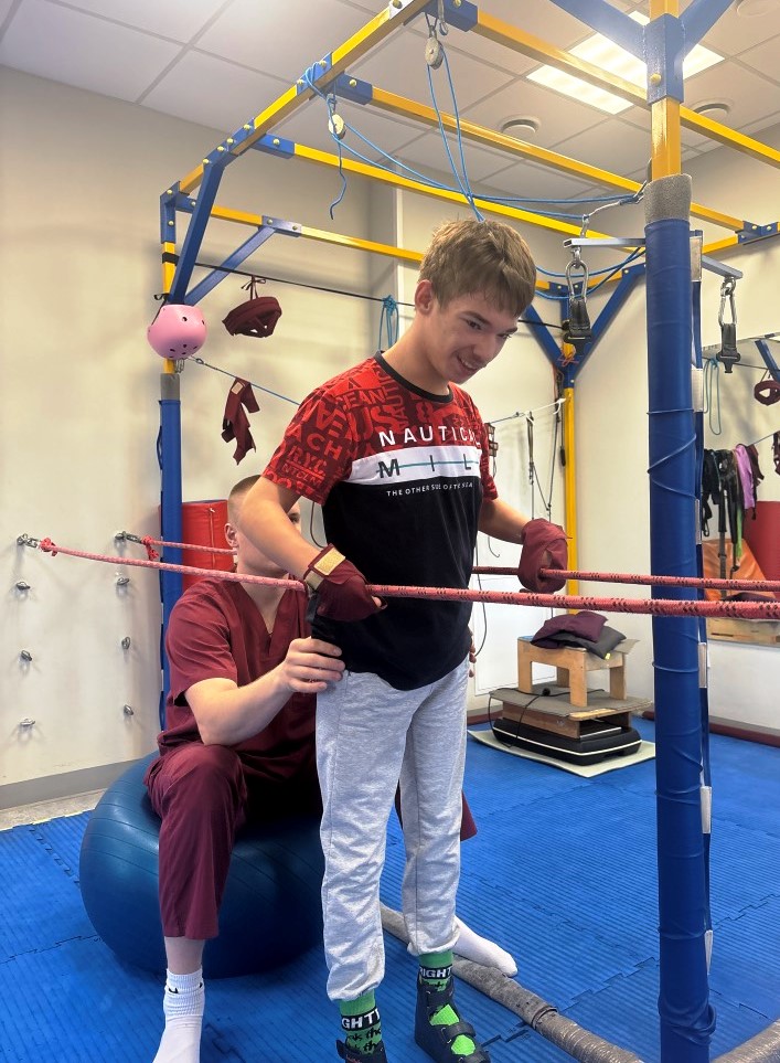 Этот курс, после проведенной непростой операции на ногах, стал очень важным для Игоря. И прошел он, буквально, на одном дыхании, легко и позитивно. А главное – с прекрасными результатами! Игорь укреплял ослабленные после операции мышцы спины и ног. Кроме того, мы отрабатывали шаговые движения, мелкую и крупную моторику рук, совершенствовали речь, занимались массажем, двигательной сенсорикой, суставной гимнастикой, адаптивной физкультурой.